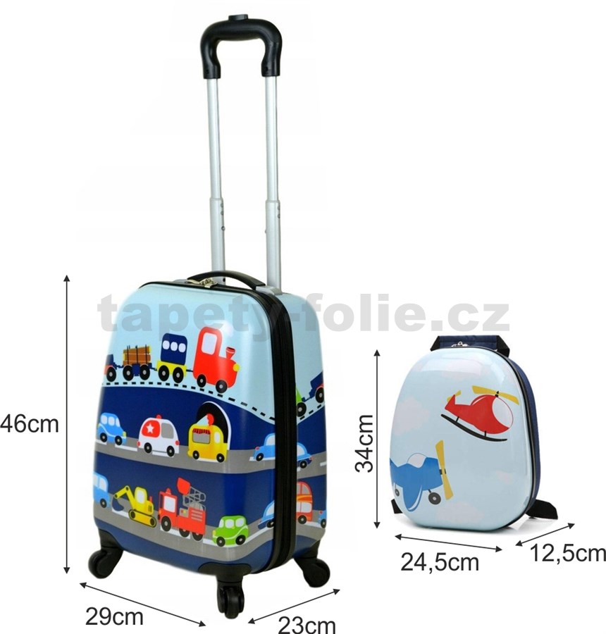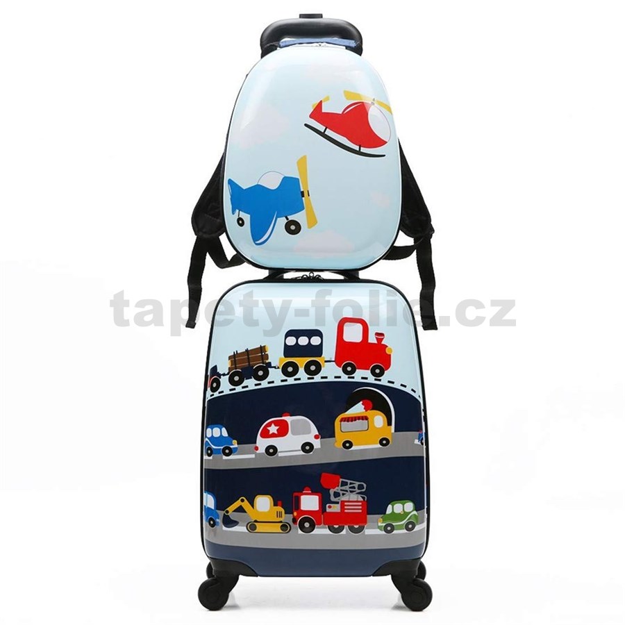 Detský kufor vysoký na kolieskách + batoh - dopravné prostriedky - AKCIA