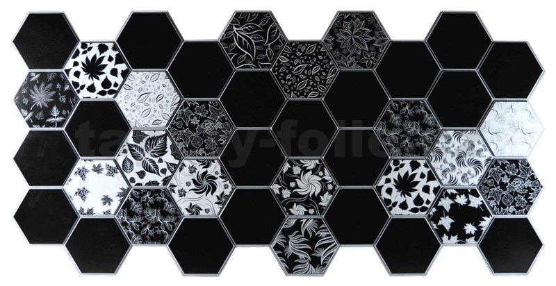Obkladové 3D PVC panely rozmer 973 x 492 mm, tloušťka 0,2 mm, čierno-biely Floral - POSLEDNÉ KUSY