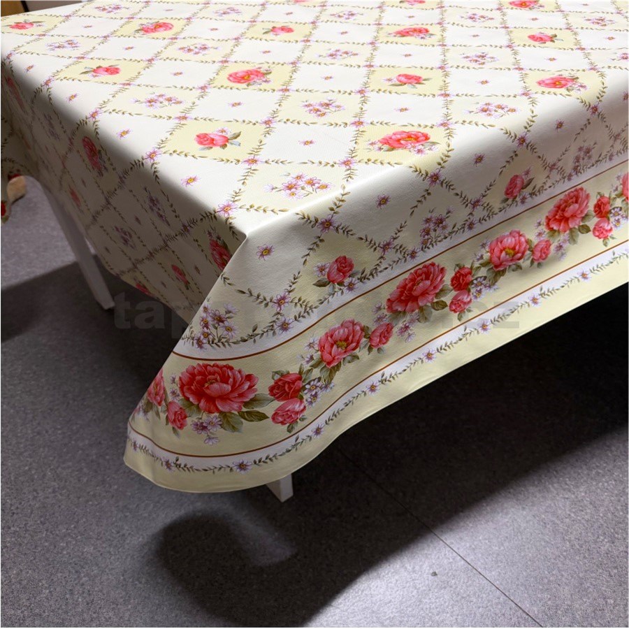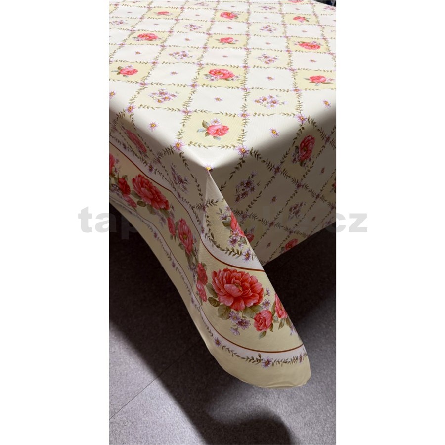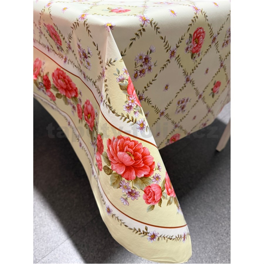 Obrus metráž ruže, pivonky a margarétky s lemom