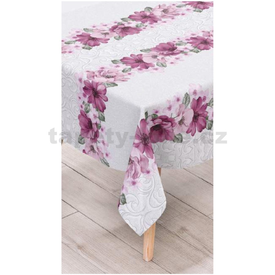 Obrusy návin 20 m x 140 cm ružové kvety s ornamentami