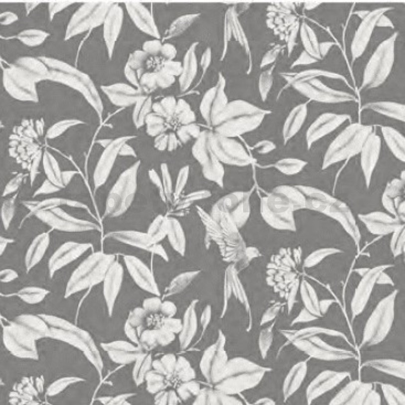 Obrusy návin 20 m x 140 cm botanický motív sivo-biely