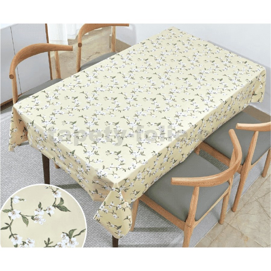 Obrusy návin 20 m x 140 cm čerešňové kvety na žltom podklade