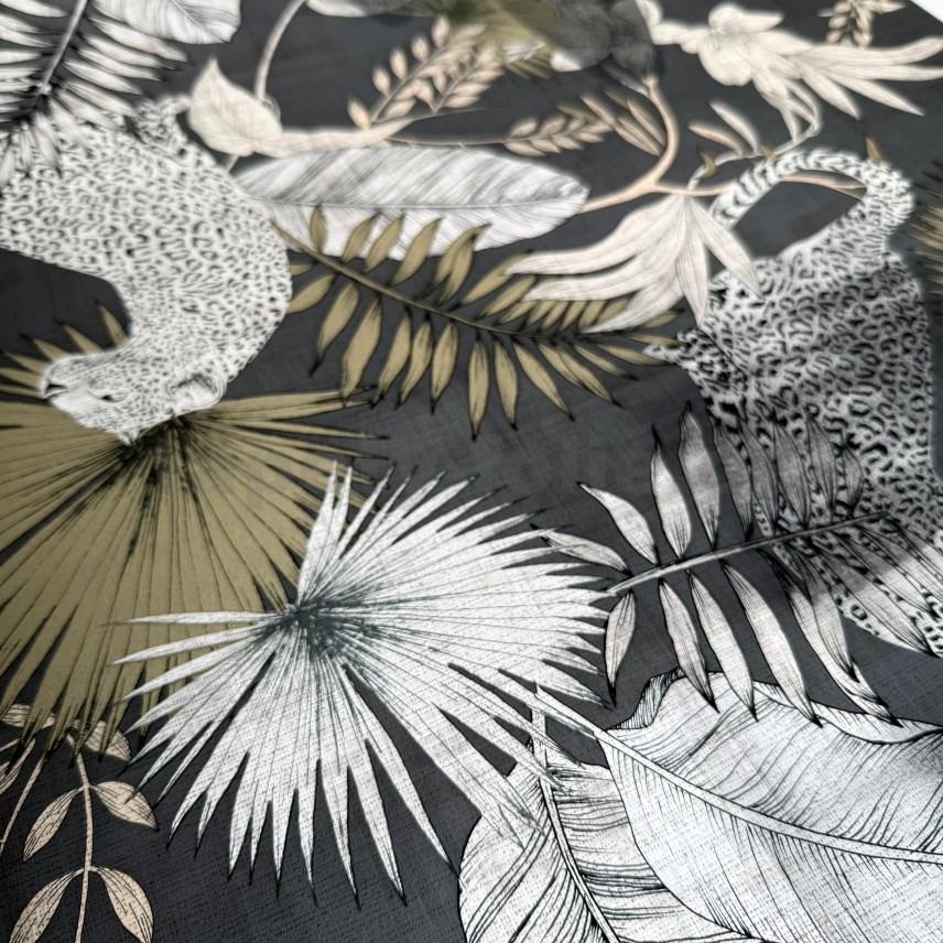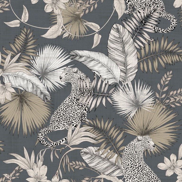 Papierové tapety na stenu leopardi a tropické rastliny