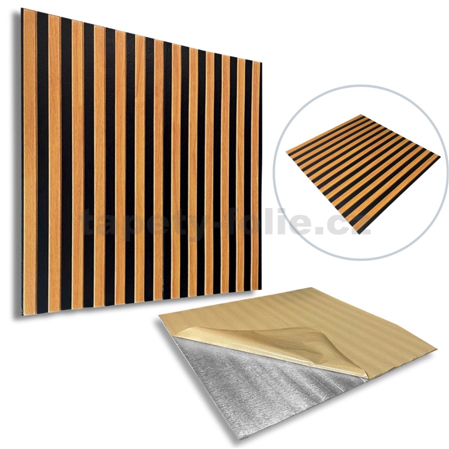 Samolepiace panely na stenu lamely na penovom podklade svetlo hnedé rozmer 66,5 x 66,5 cm