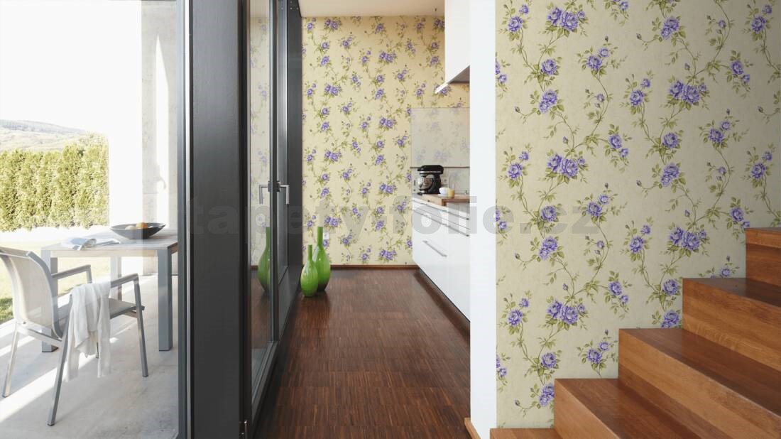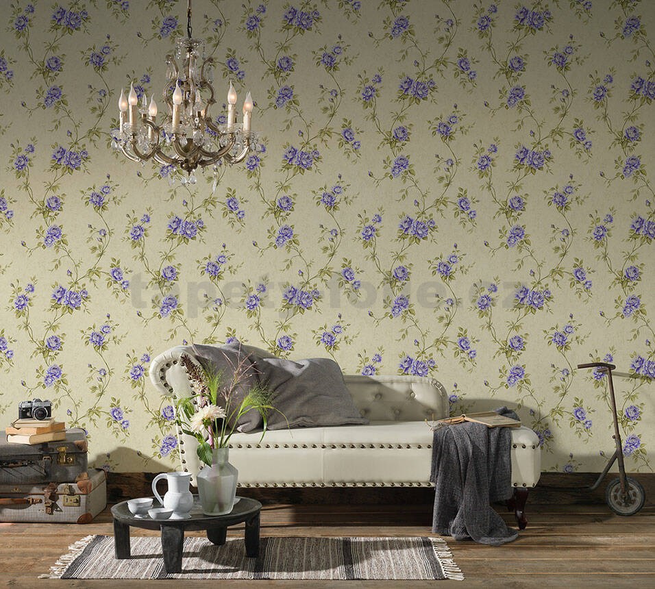 Vliesové tapety IMPOL Romantico popínavé ruže zeleno-fialové - POSLEDNÉ KUSY