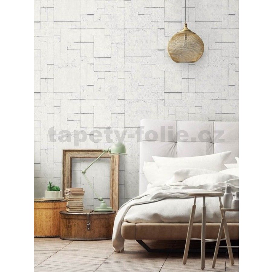 Vliesové tapety na stenu 3D panely bielo-sivé