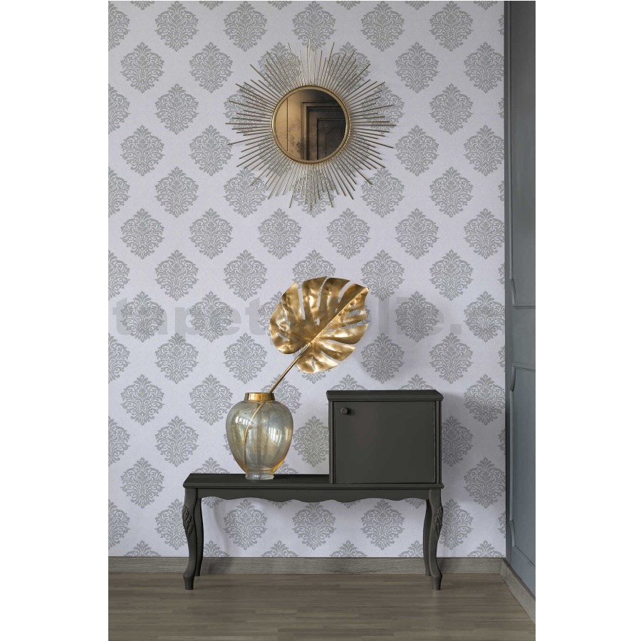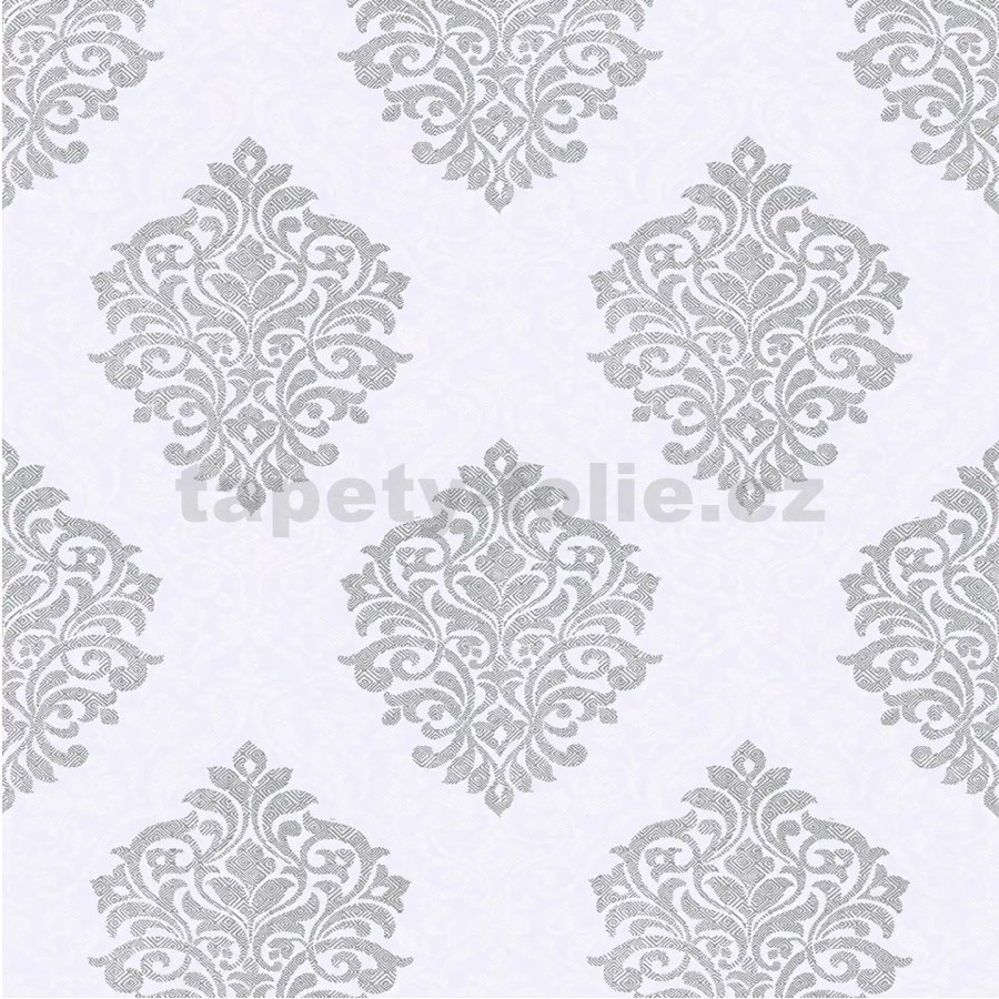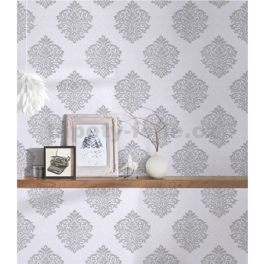 Vliesové tapety na stenu Alpha zámocký vzor sivý na bielom podklade