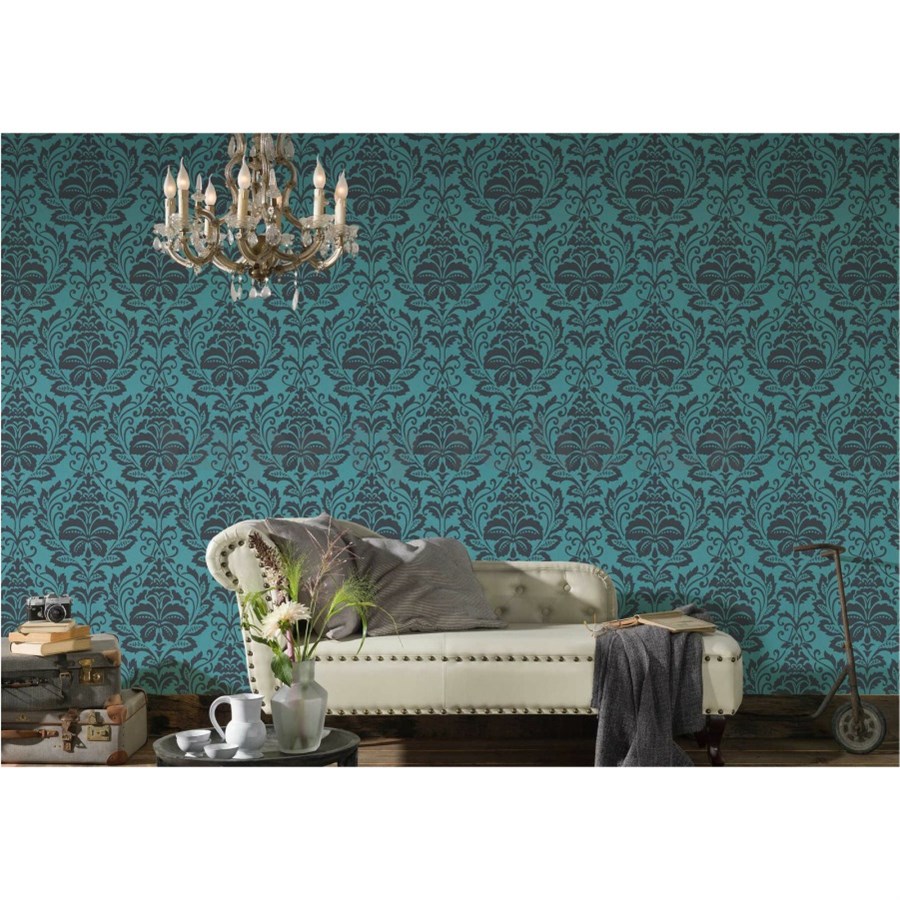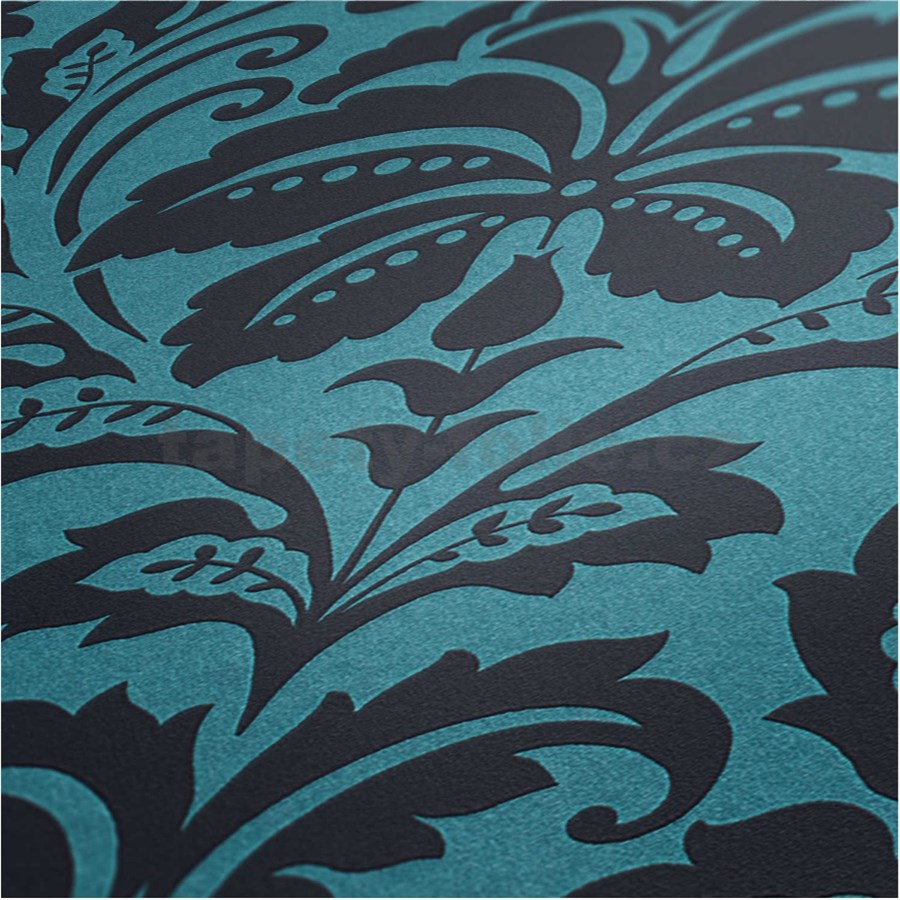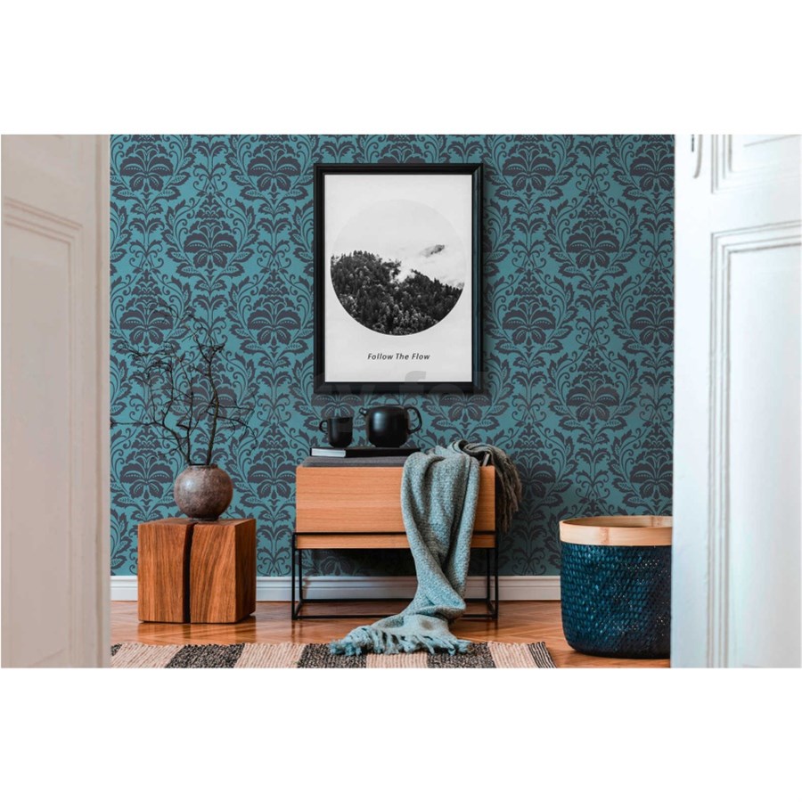 Vliesové tapety na stenu Attractive barokový ornamentálny vzor tyrkysovo-sivý - POSLEDNÉ KUSY