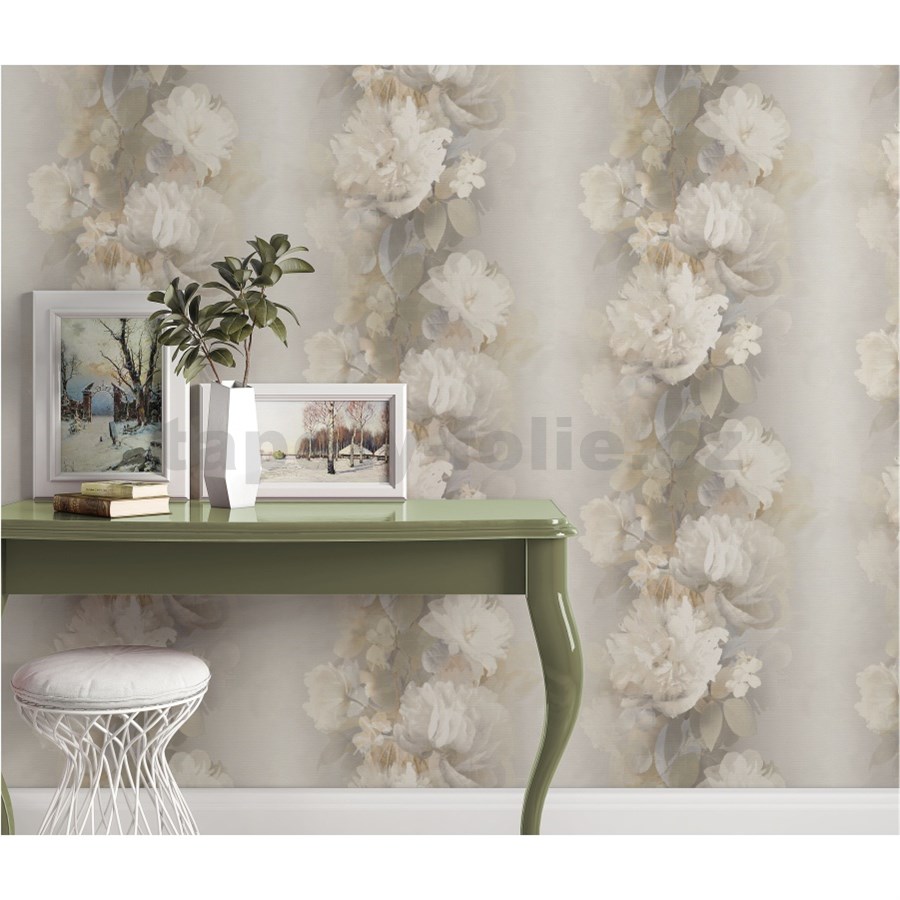 Vliesové tapety na stenu Aurora popínavé kvety na krémovom podklade