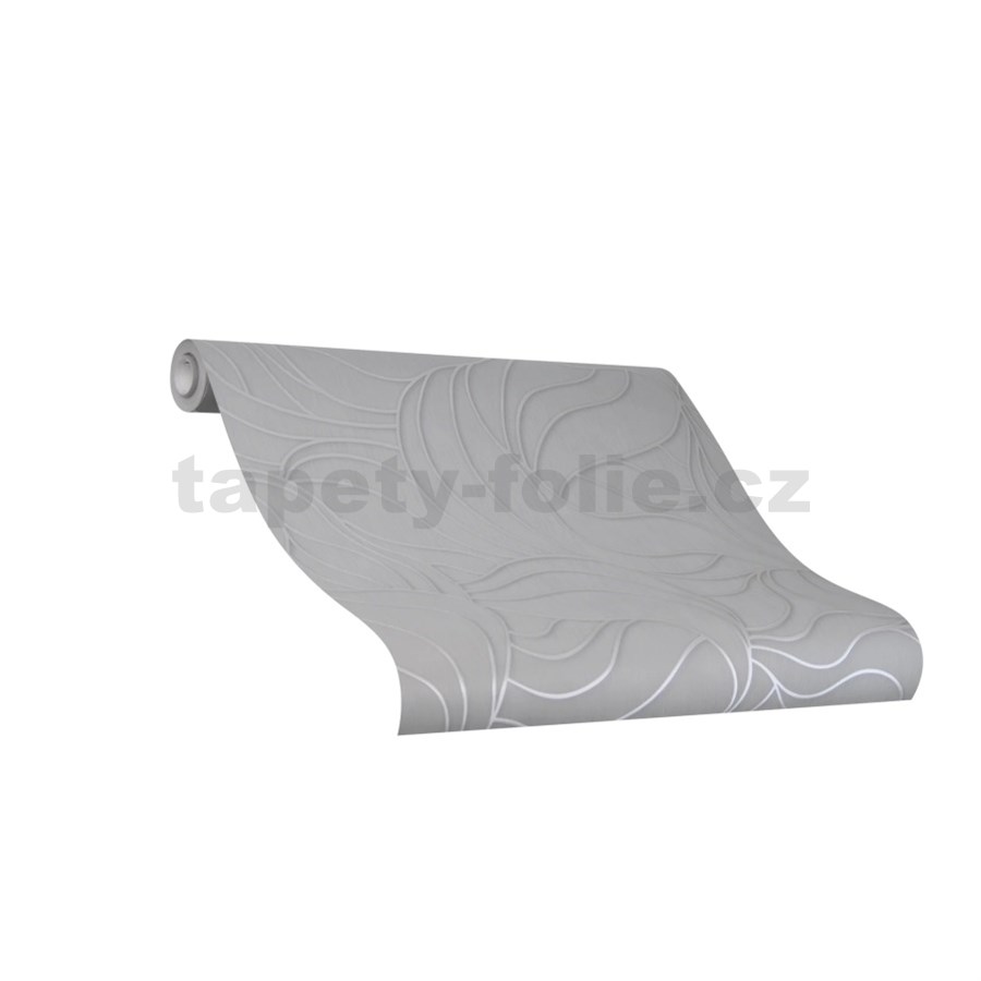 Vliesové tapety na stenu Colani Visions abstraktné listy sivé so striebornou kontúrou