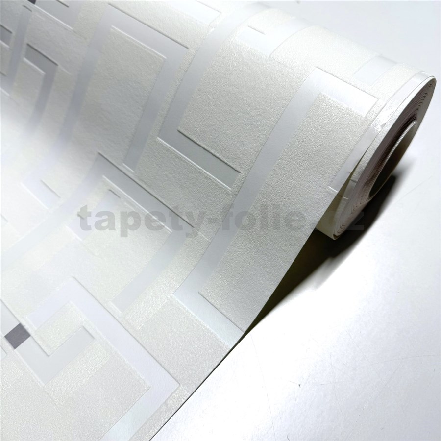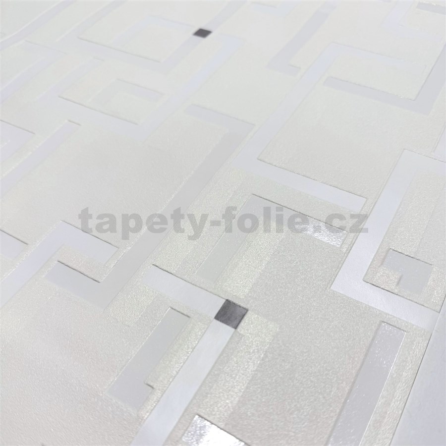 Vliesové tapety na stenu geometrický vzor biely so striebornými detailmi - POSLEDNÉ K