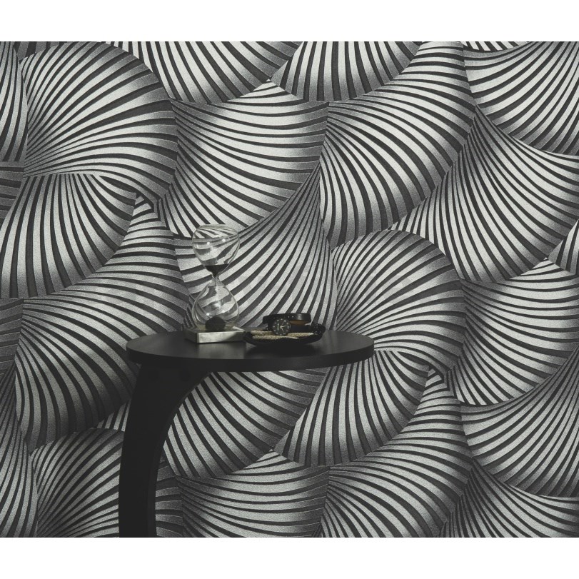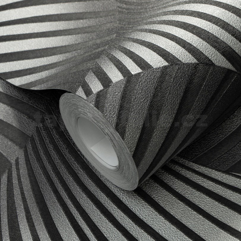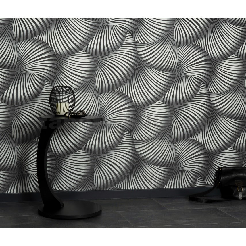 Vliesové tapety na stenu GMK Fashion for walls 5 3D twill strieborný na čiernom podklade