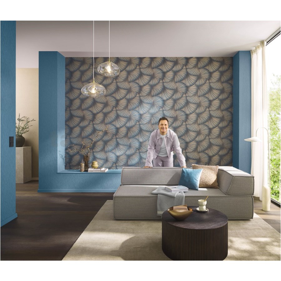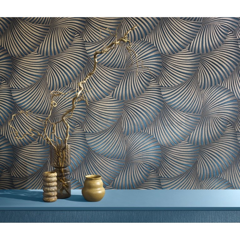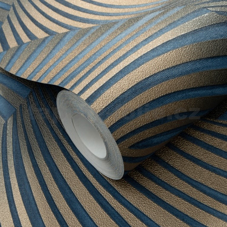 Vliesové tapety na stenu GMK Fashion for walls 5 3D twill zlatý na modrom podklade