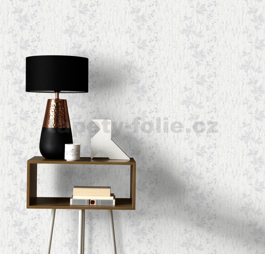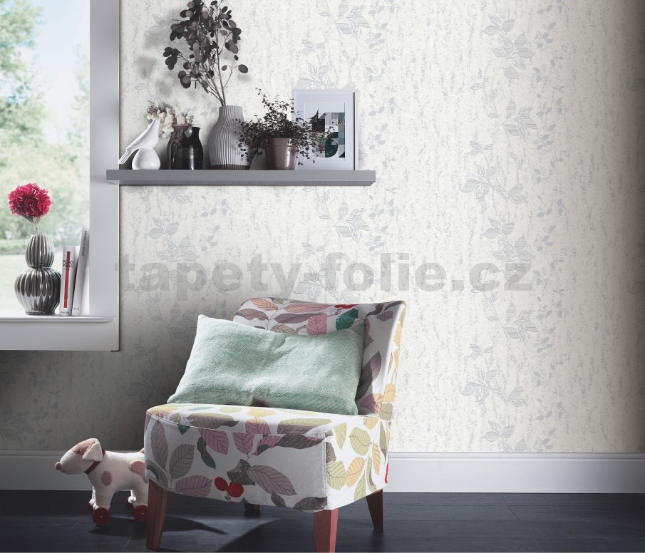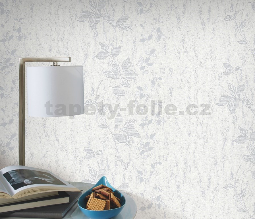Vliesové tapety na stenu IMPOL HIT popínavé stonky biele so striebornými odleskami