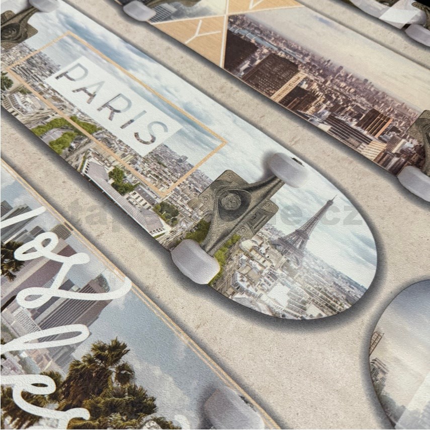Vliesové tapety na stenu IMPOL Loft skateboardy na sivom podklade