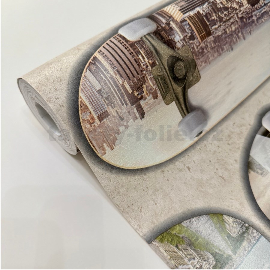 Vliesové tapety na stenu IMPOL Loft skateboardy na hnedom podklade