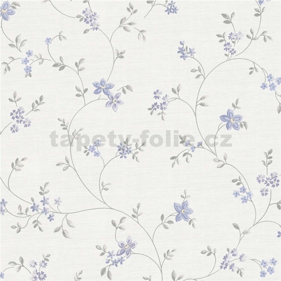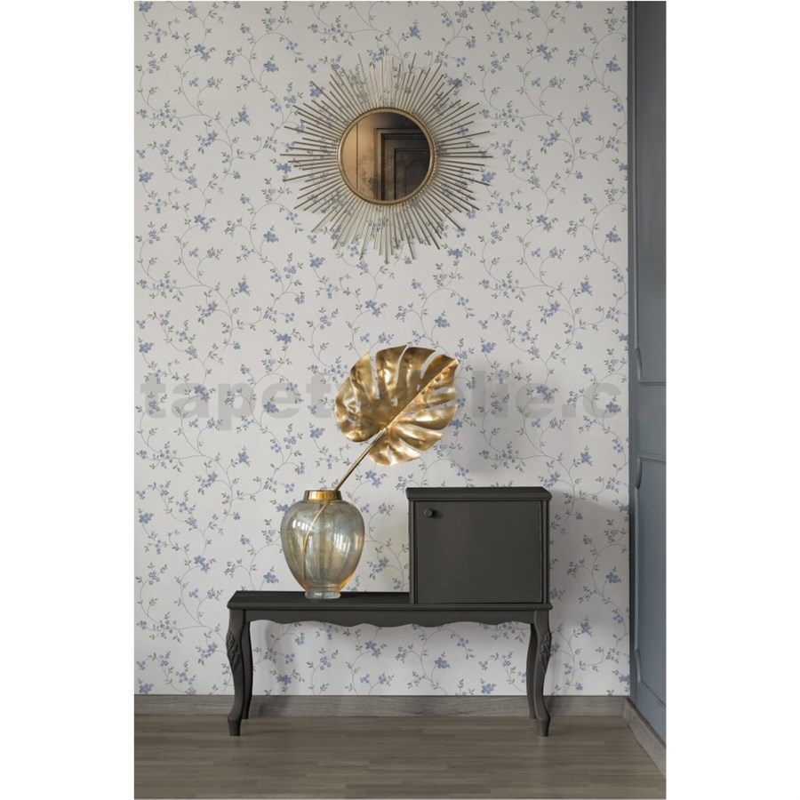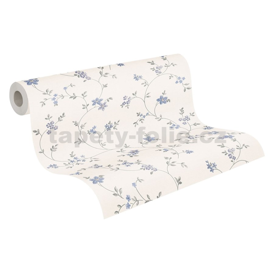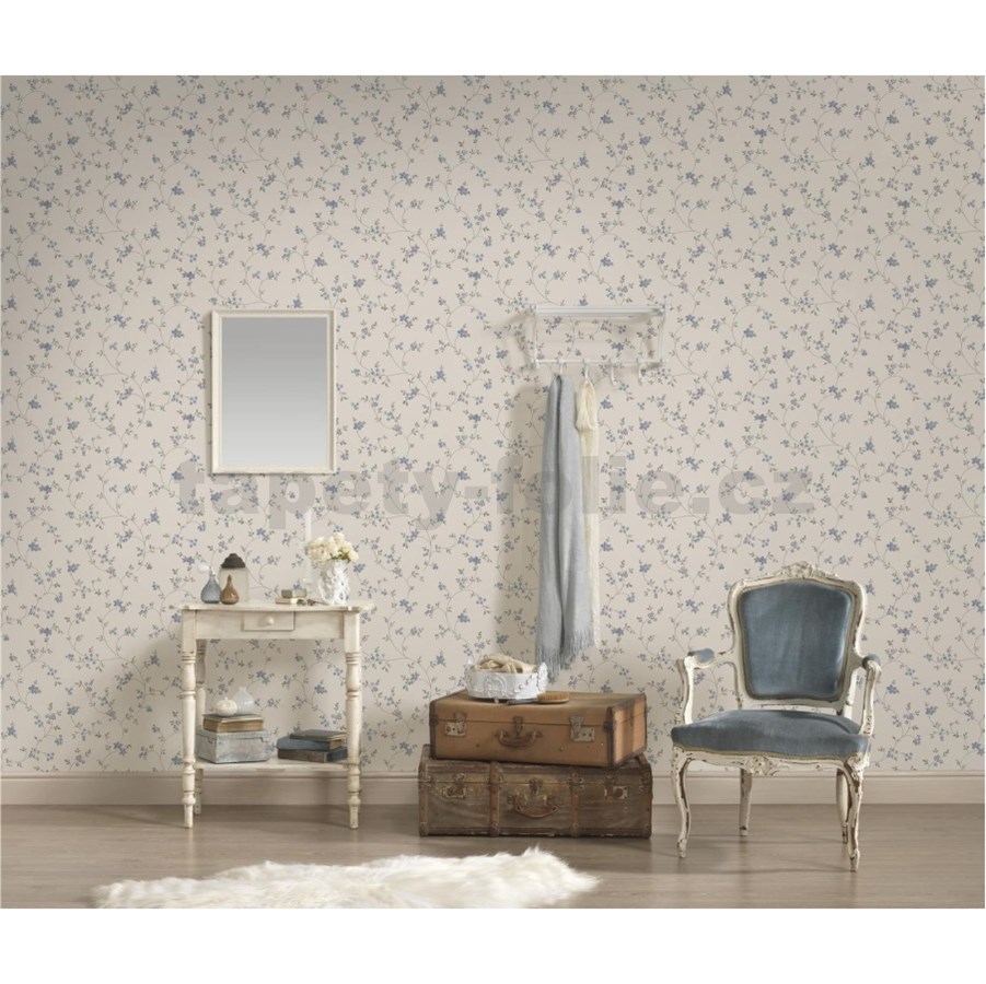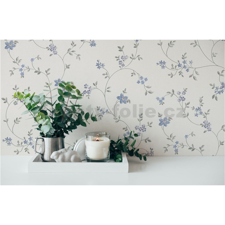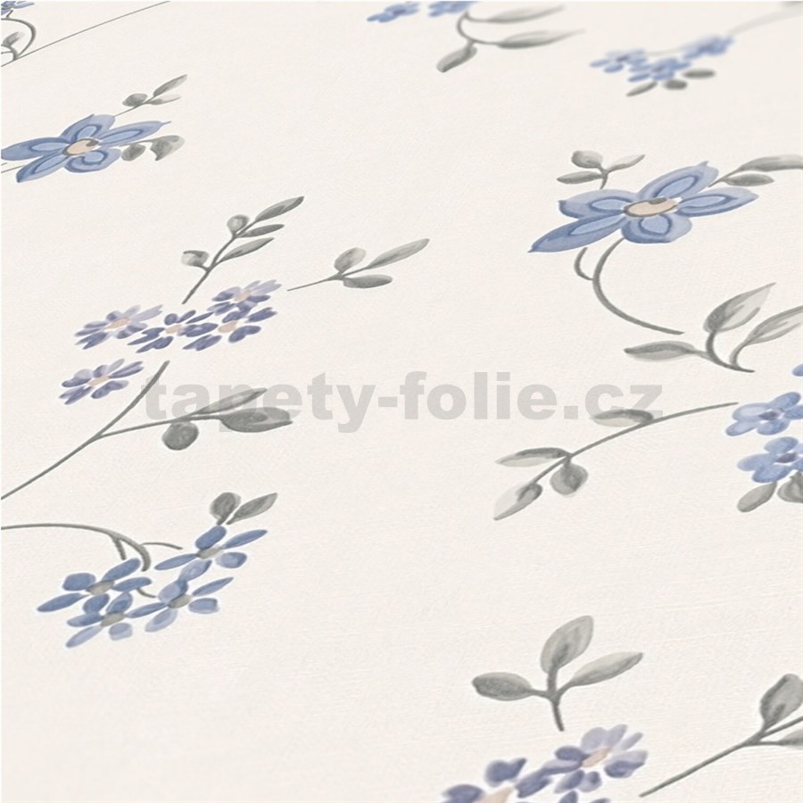 Vliesové tapety na stenu Maison Charme štylizované modré kvety na krémovom podklade