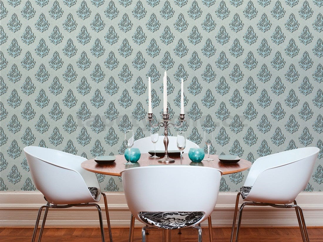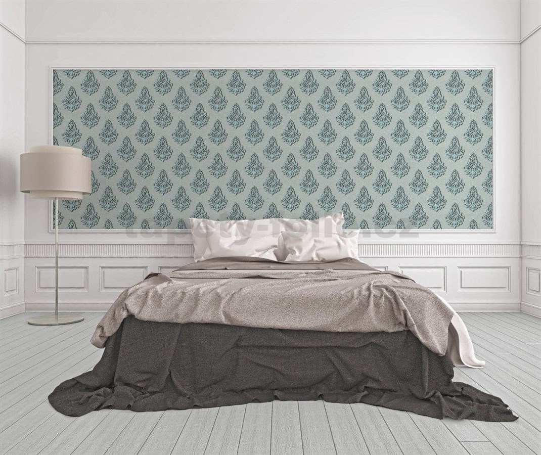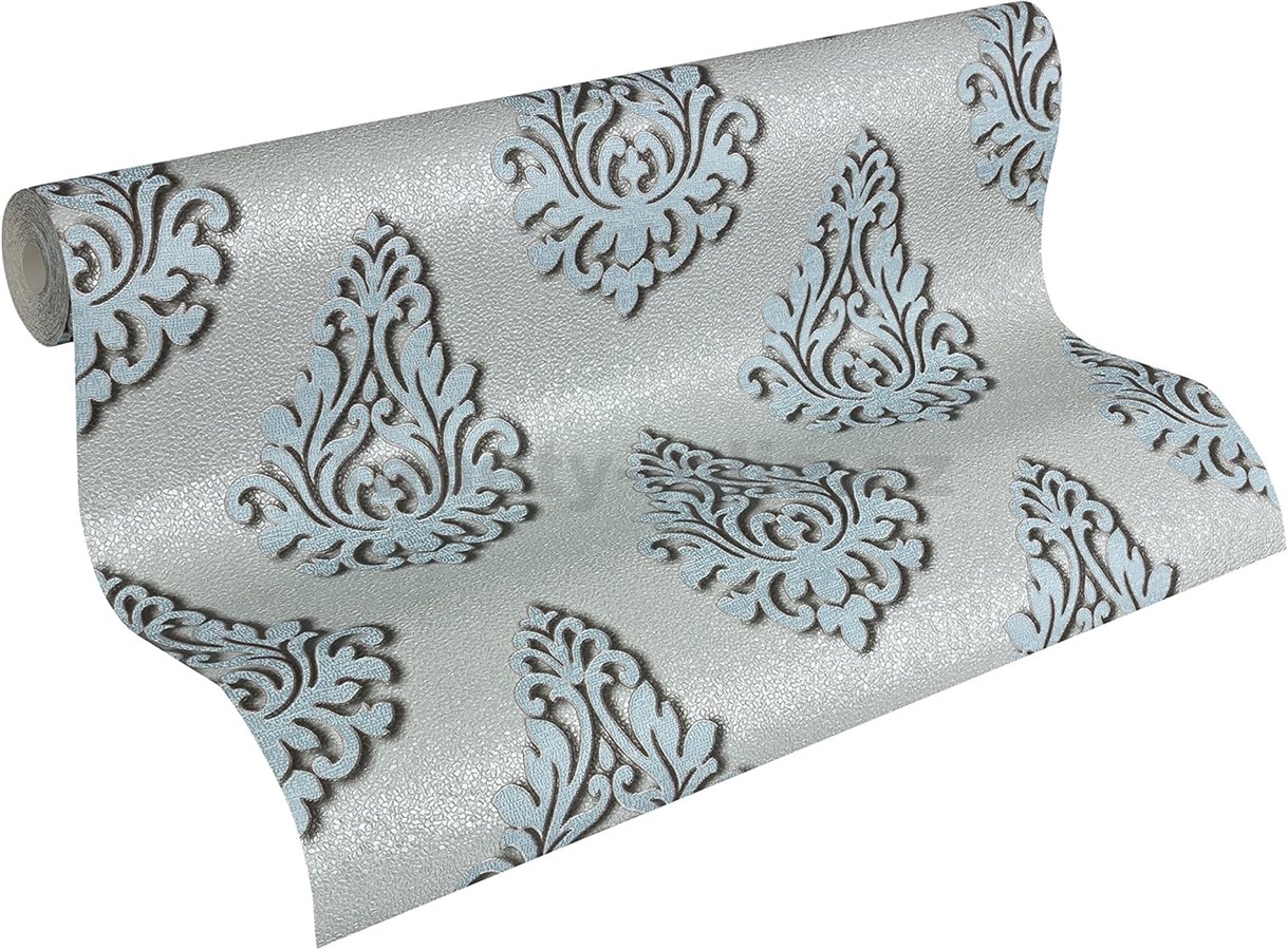 Vliesové tapety na stenu Nobile damaškový vzor modrý na striebornom podklade šírka 0,7m - POSLEDNÉ K