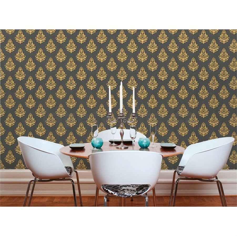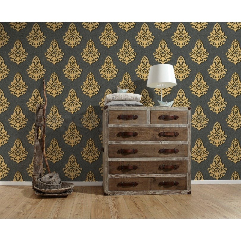 Vliesové tapety na stenu Nobile zlatý ornament na čiernom podklade - POSLEDNÉ KUSY