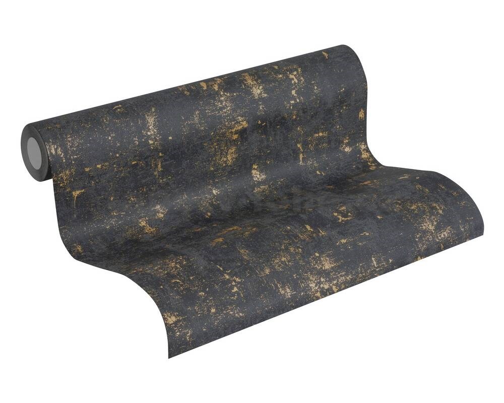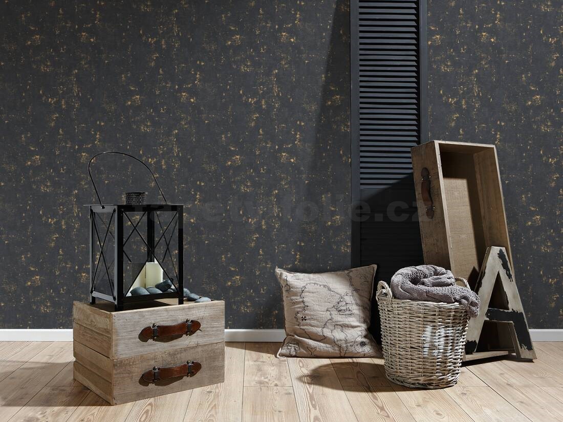 Vliesové tapety na stenu Trendwall omietkovina zlato-čierna